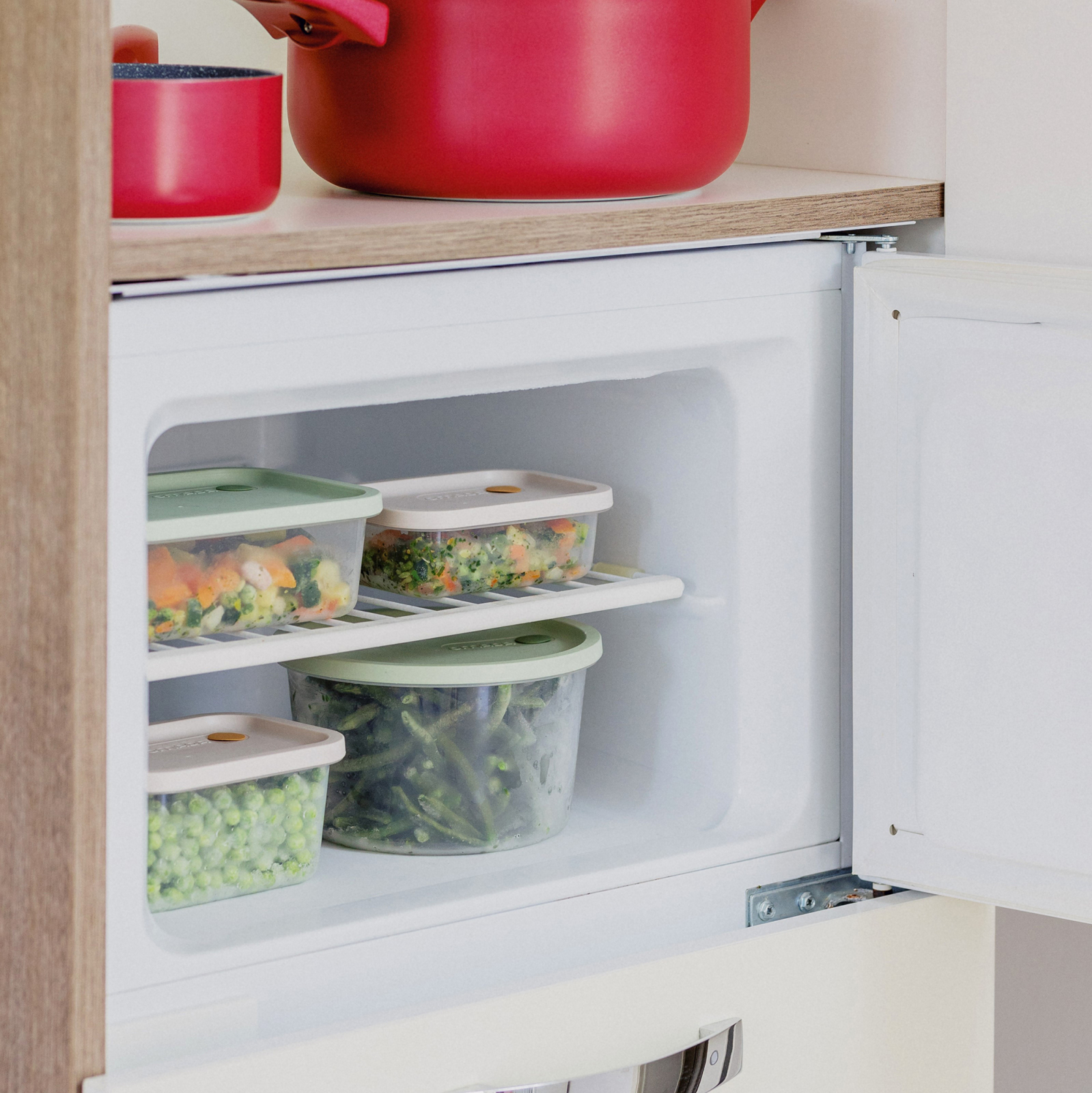 Containerele All in 1 sunt deosebit de potrivite pentru depozitarea alimentelor atât în frigider, cât și în congelator.