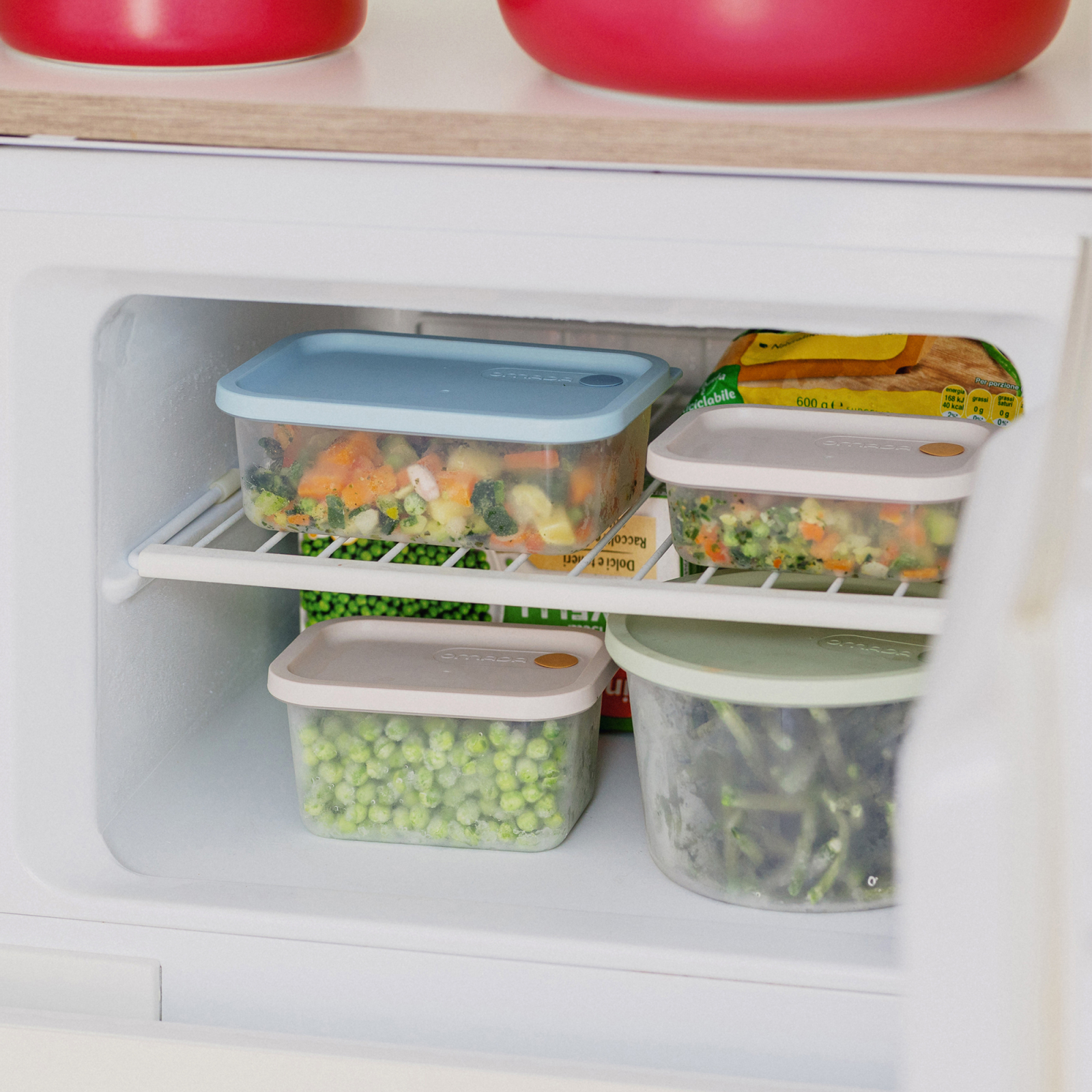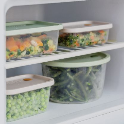 Containerele All in 1 sunt deosebit de potrivite pentru depozitarea alimentelor atât în frigider, cât și în congelator.