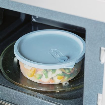 All in 1 oferă o colecție mare de recipiente cu supape de abur care le permit să fie folosite în cuptorul cu microunde cu capacul și supapa deschisă.
