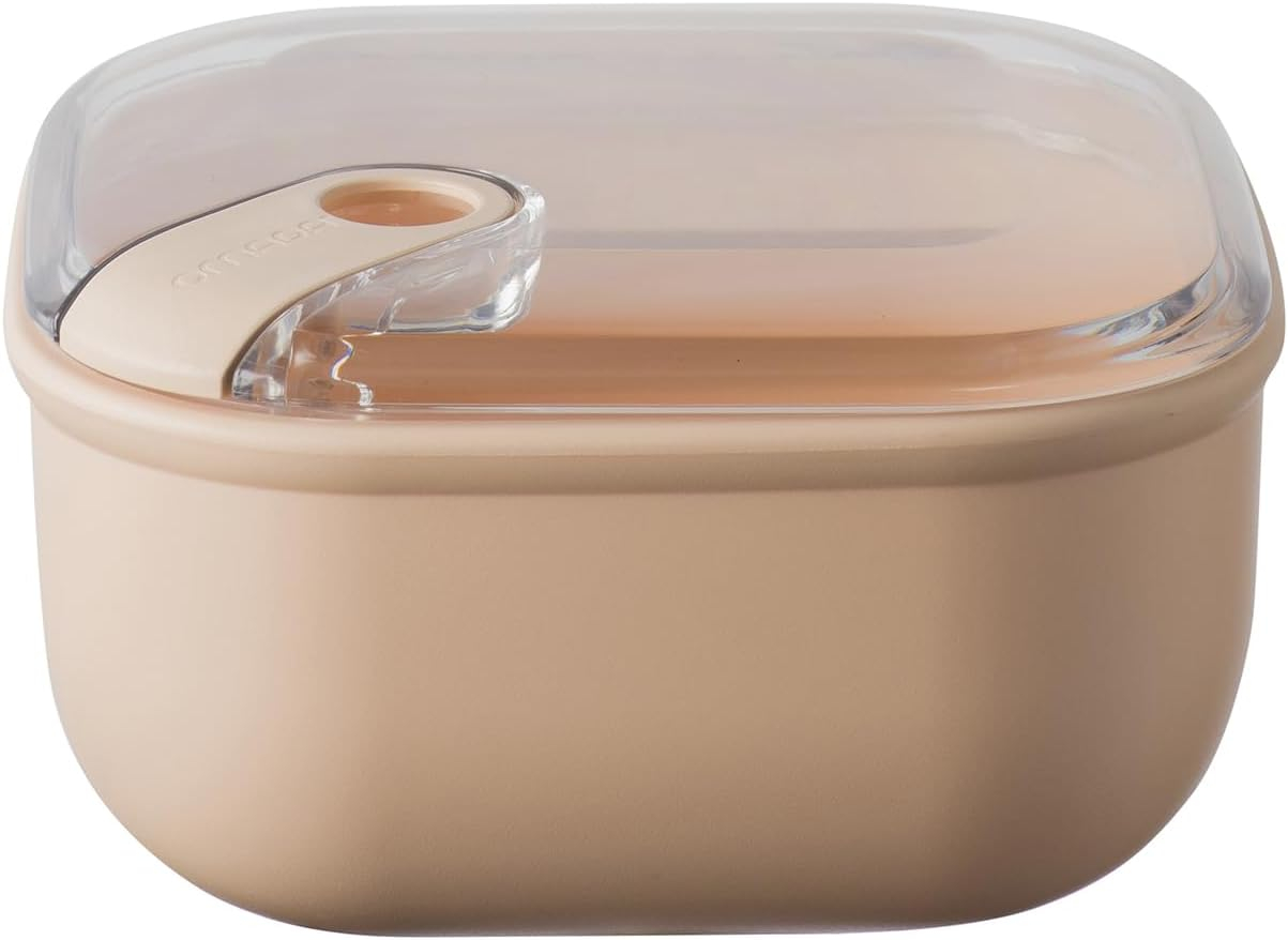 • Recipient pătrat cu capac transparent, perfect etanș și ușor de deschis și închis cu o singură mână.