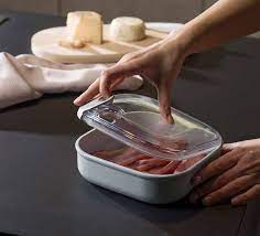 Poate fi spalat in masina de spalat vase si folosit in frigider si cuptor cu microunde.