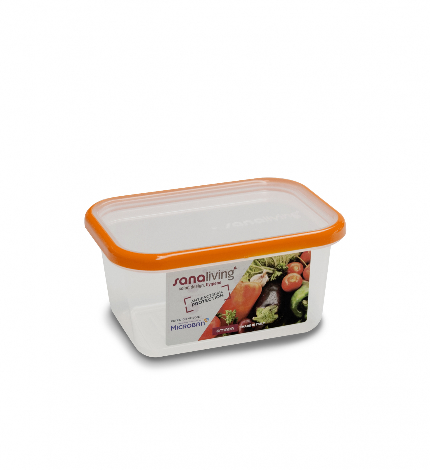 Recipient pentru conservare si pastrare alimente dreptunghiular, cu capac, Sanaliving de Omada cu capacitate de 0,5 litri in Microban® antibacterian.