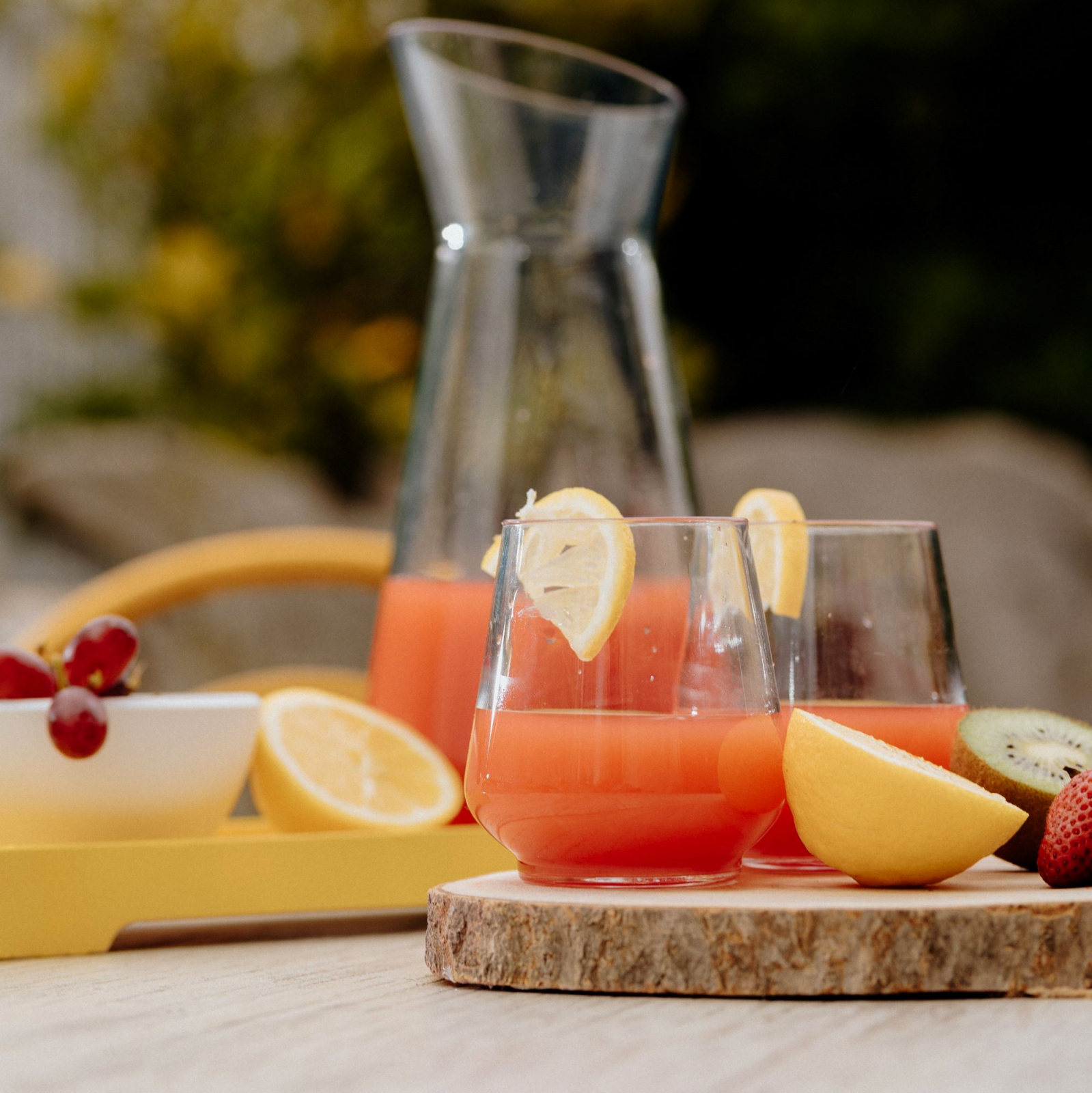 Fiecare pahar poate contine pana la 35 cl si este fabricat din tritan pentru a garanta indestructibilitate si transparenta comparabile cu cea a sticlei.