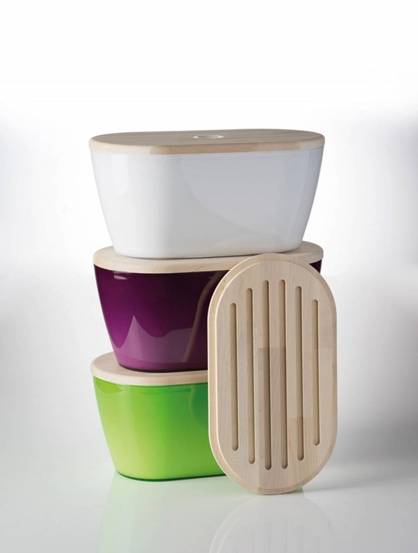 Recipientul, disponibil în șapte culori diferite, are interiorul alb care face mai vizibilă igiena produsului în contact cu alimentele și are o capacitate de 6 litri, ideal pentru depozitarea unei cantități mari de pâine.