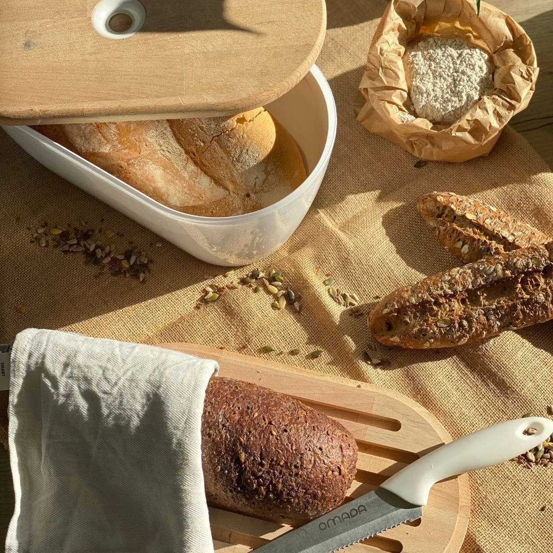Omada Design Cutie de paine 34x19x17 cm cu o capacitate de 6 litri si un capac ce poate fi folosit ca suport de taiere, ideala pentru pastrarea prospetimei si economisirea spatiului,
